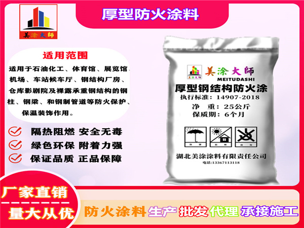 1、厚型钢结构蓬安防火涂料是以无机绝热材料为主要成分组成,具有不腐蚀钢材、不与任何防腐底漆起化学反应、无刺激性气味、涂层质量轻(结构荷载重量相对也轻)、单位涂覆面积大、遇火时不产生烟气、不释放有害气体等特点。因此适用于各种新建、扩建和改建的工业与民用建筑工程中钢结构承重构件的防火涂装及防火保护,是一种理想的防火隔热涂料。